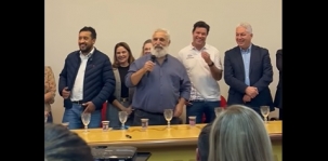 Same Saab, prefeito de Iretama e presidente da Comcam, sobre apresentação feita pela equipe técnica da Secretaria de Estado das Cidades, em evento que teve a presença do secretário Guto Silva e de 13 prefeitos da região; sexta-feira, na Comcam.