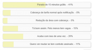 O que devia mudar na Zona Azul de Campo Mourão?” Enquete com esta pergunta foi encerrada neste domingo. A alternativa “Para de 15 minutos grátis” venceu om 41% dos votos. “Acaba com isso de uma vez” ficou em segundo, com 20%. “Tá bom assim. Pelo menos tem vagas” fechou o pódio, com 15%. O resultado completo está no quadro acima.