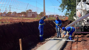 No canteiro já estão em montagem as armações das estacas e, em breve, as vigas pré-fabricadas de concreto.