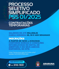 A prefeitura de Araruna está abrindo Processo Seletivo Simplificado para 19 cargos.