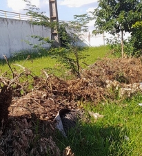 O gramado do lado de fora do estádio Roberto Brzezinski está sendo utilizado como depósito de lixo. Fora o mato alto em volta. Bem ao lado do Centro Dia do Idoso, mais conhecido como creche do idoso.