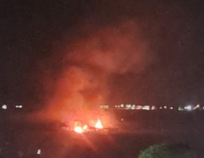Fogo atrás do Parque do Lago, nesta terça-feira à noite.