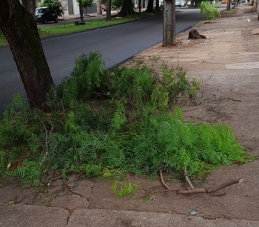 Na terça-feira foi feito o recapeamento da av. Jorge Walter, próximo ao Tonello Hotel. Fizeram poda de galhos de árvores e deixaram em cima da calçada. E os pedestres passam por onde?...