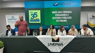 Começou nesta quarta-feira e segue até sexta, em Curitiba, o 16º Congresso de União e Fortalecimento da Vereança, promovido pela Uvepar – União de Câmaras, Vereadores e Gestores Públicos do Paraná. A abertura teve as presenças dos secretários de Estado Mauro Moraes (Trabalho, Qualificação e Renda) e Leandre Dal Ponte (Mulher, Igualdade Racial e Pessoa Idosa), além do deputado Requião Filho. Da região, o presidente da Câmara de Terra Boa, Fabiano Cardoso, fez parte da mesa principal.
