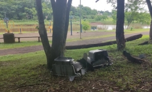 Aparelhos velhos de televisão jogados no Parque das Torres, em Campo Mourão.