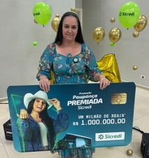 A associada Edina Aparecida Pereira Gomes Roberto, de Carambeí/PR, foi a vencedora do prêmio de R$ 1 milhão da Poupança Premiada Sicredi. O sorteio especial encerra a 9ª edição da promoção, que registrou um recorde de participação: mais de 196 milhões de números da sorte gerados e mais de 1,1 milhão de participantes, abrangendo mais de 50% dos associados do Sicredi nos estados do Paraná, São Paulo e Rio de Janeiro.