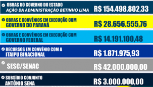 O prefeito de Goioerê, Betinho Lima, prestou contas do mandato na manhã desta quinta-feira. Disse que o município recebeu investimento de R$ 244,2 milhões nos últimos quatros anos (alguns ainda em execução). A maior parte veio do governo do Estado, com R$ 154,4 milhões (mais R$ 28,6 milhões em execução).