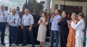A cerimônia de inauguração do Família Shopping, em Campo Mourão, nesta sexta-feira, foi prestigiada por “três prefeitos” da cidade, todos com direito a discurso. Pela ordem, falaram a prefeita em exercício, Fátima Nunes; o prefeito licenciado Tauillo Tezelli; e o prefeito eleito Douglas Fabrício.