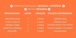 As provas serão aplicadas nas especialidades de anestesiologia, clínica médica, cirurgia geral, medicina intensiva e pediatria.