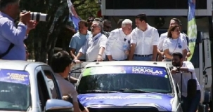O governador Ratinho Jr esteve em Campo Mourão nesta sexta-feira. Veio para participar de carreata da campanha do candidato a prefeito Douglas Fabrício (Cidadania). O percurso saiu do Aeroporto Municipal e percorreu bairros da cidade. O prefeito Tauillo Tezelli e o secretário de Estado Márcio Nunes (Turismo) também participaram.