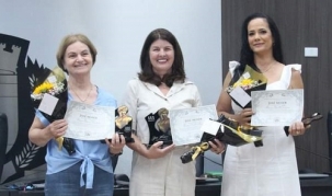 Neusa Vicêncio, de Araruna, e Greice Kelli Sonsin e Denize Goretti Ferreira, de Campo Mourão, foram homenageadas no fim de semana pela Academia Mourãoense de Letras. Elas receberam o Troféu José Moser pelo trabalho que realizam como intérpretes de Língua Brasileira de Sinais – Libras. O troféu é concedido anualmente a representantes de categorias profissionais que contribuem para o desenvolvimento cultural, literário e artístico.