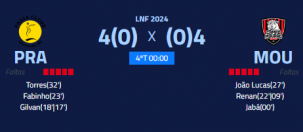 O jogo terminou em 4 a 4 no tempo normal e 0 a 0 no tempo extra.