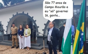 O clic é desta quinta-feira, quando a prefeitura realizou ato cívico em frente ao Museu Municipal para marcar os 77 anos de Campo Mourão. O prefeito Tauillo Tezelli participou. Falou dos primeiros moradores que colonizaram o município e sua contribuição para o desenvolvimento. Também destacou o momento favorável vivido pela gestão de Campo Mourão.