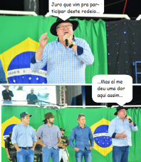 Os cliques são desta segunda-feira, em Mamborê, onde, por causa da chuvarada de sexta-feira, o início do rodeio teve de ser adiado. Resultado? A final, que seria domingo, ficou para a segundona. O prefeito Ricardo Radomski prestigiou esse dia a mais da Expomam e discursou antes que os peões iniciaassem seus trabalhos...