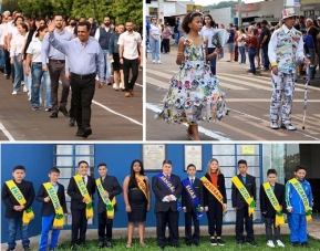 Várias cidades da região realizaram desfiles nesta quinta-feira para comemorar o Dia da Independência do Brasil. Em Goioerê, até o prefeito Betinho Lima desfilou. Puxou a fila dos servidores municipais. Em Barbosa Ferraz o desfile teve tema: reciclagem. Já em Corumbataí do Sul, virou tradição: crianças desfilam representando o prefeito, o vice-prefeito e os nove vereadores. No caso do prefeito Xandão Donato, o representante foi o filho dele...