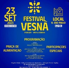 Roncador - A realização do Festival Vesná, a partir das 20h, encerra neste sábado a Semana Cultural promovida pela prefeitura. Será no estacionamento do Paço Municipal.