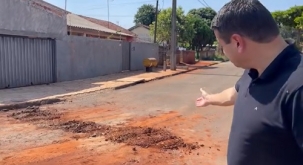 Junior Garbim, prefeito de Engenheiro Beltrão, que ficou na bronca com empresa terceirizada da Sanepar por reparo mal feito em rua recentemente asfaltada no distrito de Figueira do Oeste. Segundo ele, a empresa já foi notificada; em vídeo postado em redes sociais.