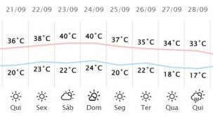 Vai fazer muito calor em Campo Mourão nos próximos dias, mas o Simepar não fala mais em temperaturas acima dos 40 graus. Agora 40 é o máximo para sábado e domingo. A princípio, o instituto previa até 43 graus na cidade e vários outro dia com 41. No Climatempo, a previsão é que os termômetros cheguem a 39 graus no domingo.