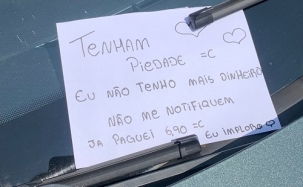 Olha o recado deixado no parabrisas de um carro, nesta segunda-feira, na rua Harrison José Borges, em Campo Mourão. "Tenham piedade. Eu não tenho mais dinheiro. Não me notifiquem. Já paguei R$ 6,90. Eu imploro", diz o bilhete dirigido aos agentes da Zona Azul.