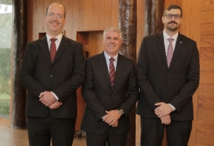 O que é isso? O presidente da Câmara de Campo Mourão, Edilson Martins, no meio de jogadores de basquete? Nã-nani-nanã! A foto é do evento com a Justiça Federal, na terça-feira. Os "grandões" são juízes - Layre Colino Neto (juiz federal, diretor da Secretaria Administrativa da Seção Judiciária do Paraná) e Vitor Tofolli (juiz estadual, da 1ª Vara da Fazenda Pública). Detalhe: o primeiro tem 2,02 m de altura, e o segundo, 2,06 m. Entre eles, o presidente da Câmara, com seus 1,81 m, virou "Edilsinho"...