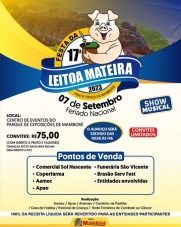 Já estão à venda os convites para a 17ª Festa da Leitoa Mateira.