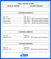 Os novos valores da água em Peabiru estão na tabela acima.