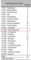 A 11ª Regional de Campo Mourão aparece com um caso da doença.