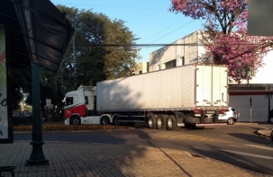 Carreta passa pelo trecho do calçadão da av. Capitão Índio Bandeira na manhã desta quarta-feira.