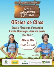 A Associação Sou Arte realiza nesta quarta-feira Oficina de Circo em duas escolas municipais de Campo Mourão. Serão atendidos cerca de 160 alunos de 10 a 12 anos do Caic (Albuquerque) e Domingos José de Souza (Tropical).