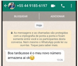 "Atenção! Estão usando um número e minha foto para entrar em contato com conhecidos para supostamente dar golpes".