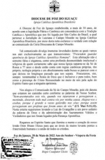 Monsenhor João Dias, vigário episcopal, bispo coadjutor eleito, da diocese de Foz do Iguaçu da Igreja Católica Apostólica Brasileira, em nota em que responde "Comunicado" da Mitra Diocesana de Campo Mourão, onde o bispo d. Bruno Versari pede que os fieis não se deixem enganar por outra igreja.