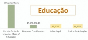 Na educação, o índice não pode ser inferior a 25% e está em 14,27%.