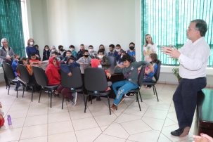 O prefeito de Campo Mourão, Tauillo Tezelli, recebeu a visita de mais um grupo de estudantes Desta vez foram alunos das escolas Nicon Kopko e Ethanil Bento de Assis. As crianças entregaram ao prefeito uma carta com pedido de melhorias na estrutura das escolas. No caso da escola Ethanil, Tauillo explicou que o projeto de reforma já está em fase de conclusão e ainda no primeiro semestre será feita a licitação.