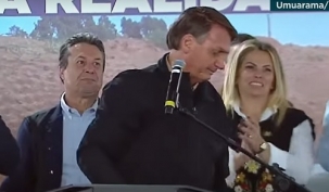 O presidente Jair Bolsonaro esteve em Umuarama nesta sexta-feira. Foi visitar as obras da Estrada Boiadeira, em trecho que está sendo asfaltado através de convênio entre Itaipu e governo do Estado. E olha quem ficou pertinho do presidente na hora do discurso. O deputado Márcio Nunes, de Campo Mourão, esteve por lá e ficou logo atrás de Bolsonaro.