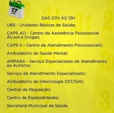 Na sexta os postos de saúde e a própria Secretaria de Saúde terão expediente das 7h às 13h (veja quadro acima).