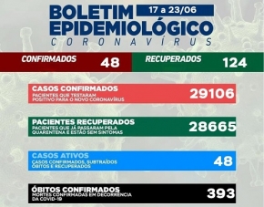 Campo Mourão está com 48 casos ativos de covid-19. É o que mostra boletim divulgado nesta quinta-feira. Caiu bem em relação à semana passada, quando eram 127. A média ficou em 6,8 novos casos por dia. Na ala covid há três pessoas internadas, todas na enfermaria. A má notícia da semana é que foram confirmadas mais três mortes pela doença e agora são 393 desde o início da pandemia.