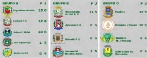 Apenas dois jogos serão disputados neste domingo (15h30) pela Copa Comcam - Grupo ABL, ambos pelo grupo A, que tem mais times. O líder Engenheiro Beltrão recebe Boa Esperança e o vice-líder Luiziana vai a Quinta do Sol. A classificação nas três chaves está no quadro acima.