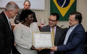 Teve entrega de moção da Câmara de Campo Mourão neste domingo à noite. Foi na 3ª Igreja do Evangelho Quadrangular, no jardim Tropical I, que completou 30 anos de atuação. O vereador autor Edilson Martins e o prefeito Tauillo Tezelli fizeram a entrega aos pastores Reinaldo e Margueti.