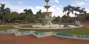 Picharam o chafariz da praça Getúlio Vargas.