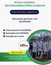 Estão abertas as inscrições para quem quiser estudar o ensino médio na UTFPR de Campo Mourão.