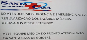 A Santa Casa de Goioerê está, desde sexta-feira, atendendo apenas casos de urgência e emergência.