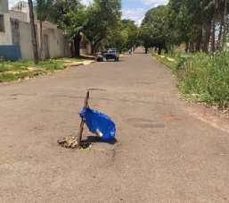 Buraco sinalizado, na última rua do jardim Bandeirantes.