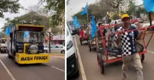 Teve "carrinhata eleitoral" neste sábado em Campo Mourão. Foi uma ação de campanha do vereador Tio Leco (P)), que é candidato a deputado estadual. O trenzinho dele puxou uma fila de carrinhos de catadores de materiais recicláveis. Tio Leco já foi "catador de papel" e faz campanha pregando a defesa da categoria. A "carrinhata" passou pelo centro da cidade.