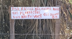 Olha o recado deixado nas plantas no jardim Araucária, em Campo Mourão.