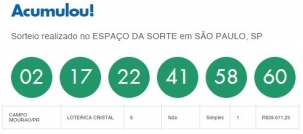 Uma aposta feita em Campo Mourão (lotérica Cristal) acertou cinco das seis dezenas da Mega Sena sorteadas nesta quinta-feira. A quina garantiu um prêmio de R$ 39,6 mil. Foram 160 quinas em todo o País. A sena ninguém fez e o prêmio de cerca de R$ 110 milhões ficou acumulado para o próximo sorteio, quando deverá chegar a R$ 125 milhões. Ah, por um numerozinho...
