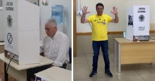 Os dois atuais de deputados estaduais de Campo Mourão - Douglas Fabrício e Márcio Nunes - votaram pela manhã. O primeiro numa seção do Integrado e o segundo no Santa Cruz, ambos no centro da cidade. Douglas tenta o quinto mandato na Assembleia Legislativa. Márcio, o terceiro. Márcio, aliás, estava acomanhado da esposa, a vice-prefeita Fátima Nunes, que é candidato a deputada federal.