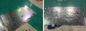 "Situação da quadra do ginásio do Lar Paraná. Está até sem o piso e colocaram essas fitas pratas, pondo em risco as crianças, pois podem cortar".