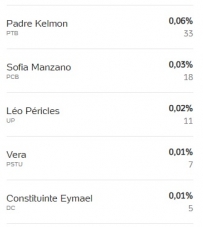 Dos chamados candidatos "nanicos" que disputaram a Presidência da República, Padre Kelmon (PTB) foi o mais votado em Campo Mourão. Fez 33 votos. Valeu a exposição nos debates. Sofia Manzano (PCB) ficou em segundo, com 18. Depois vieram Léo Péricles (UP), com 11, e Vera (PSTU), com 7. A lanterninha ficou com Constituinte Eymael (DC), com cinco votinhos.