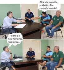 Lembra do atleta Henrique Pedroso Silvério, de Campo Mourão, que venceu o Campeonato Mundial de Aquabike Standard, em Abu Dhabi, nos Emirados Árabes? Ele esteve nesta quarta-feira na prefeitura. Levou a medalha que conquistou para o prefeito Tauillo Tezelli ver. Henrique também ficou, este ano, em 3º lugar no Mundial de Aquabike longa distância, na Eslováquia.