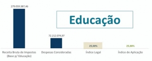 O índice ficou em 25,88% das receitas, contra o mínimo de 25%.